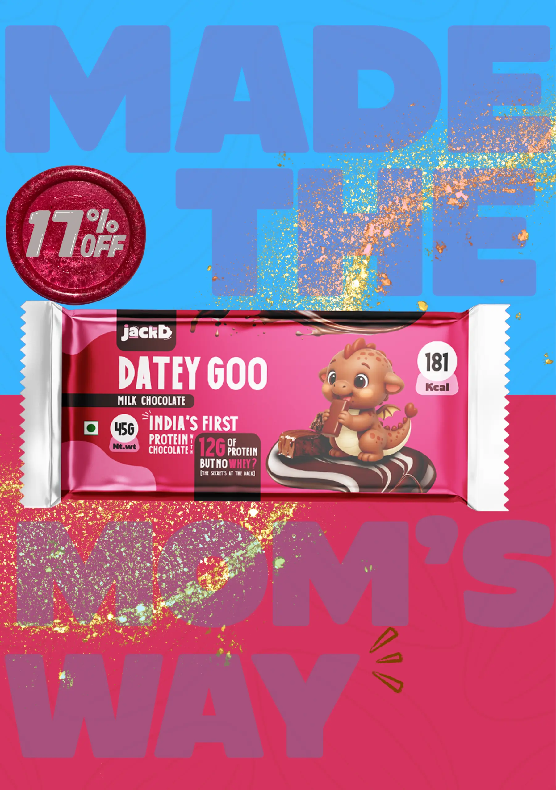 At JackD, we believe chocolate should do more than taste good. It should make you feel good too. Born in a small kitchen filled with laughter, cocoa, and care, JackD was created to bring together strength, kindness, and pure joy in every bite. We use clean, honest ingredients like dates for natural sweetness, creamy milk, rich cocoa, cashew butter, and protein for lasting energy. No palm oil, no refined sugar, no artificial additives. Just real, feel-good fuel that loves you back. Our baby dragon represents who we are at heart: brave, kind, and full of energy.